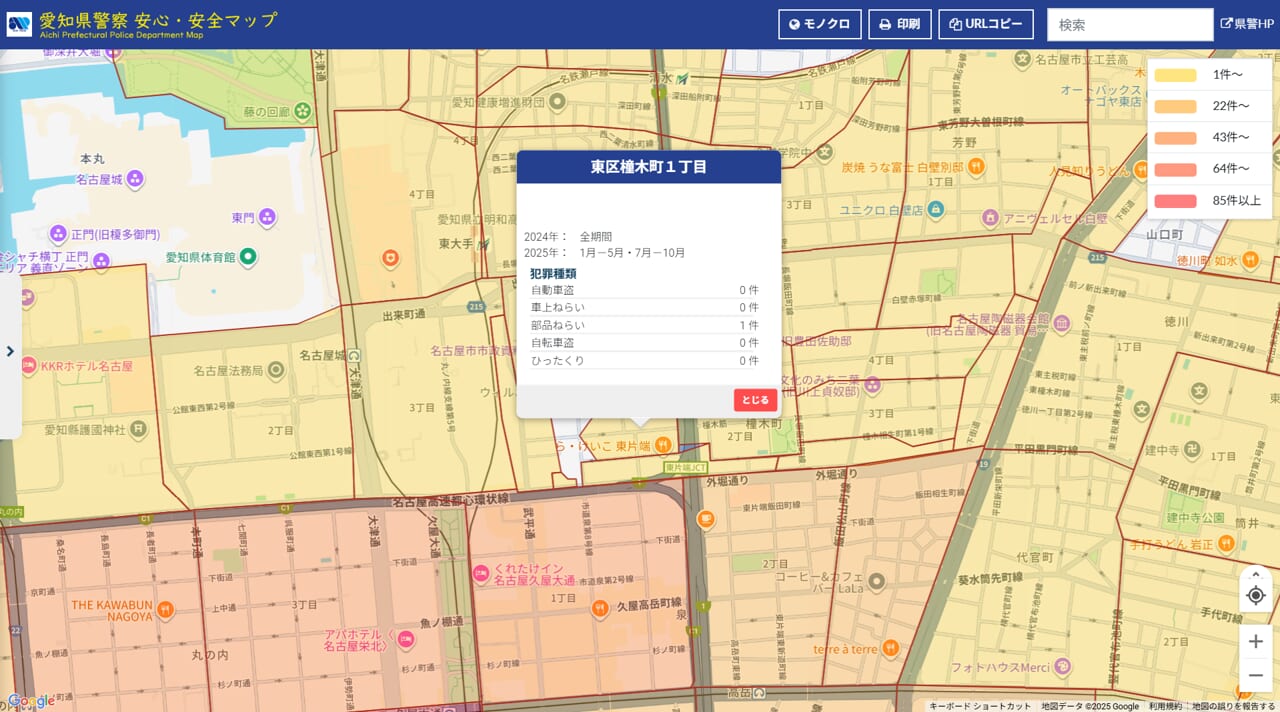 治安面も驚異的で、2024〜2025年の犯罪発生件数は わずか1件。数字としても体感としても、非常に穏やかな住宅街です。