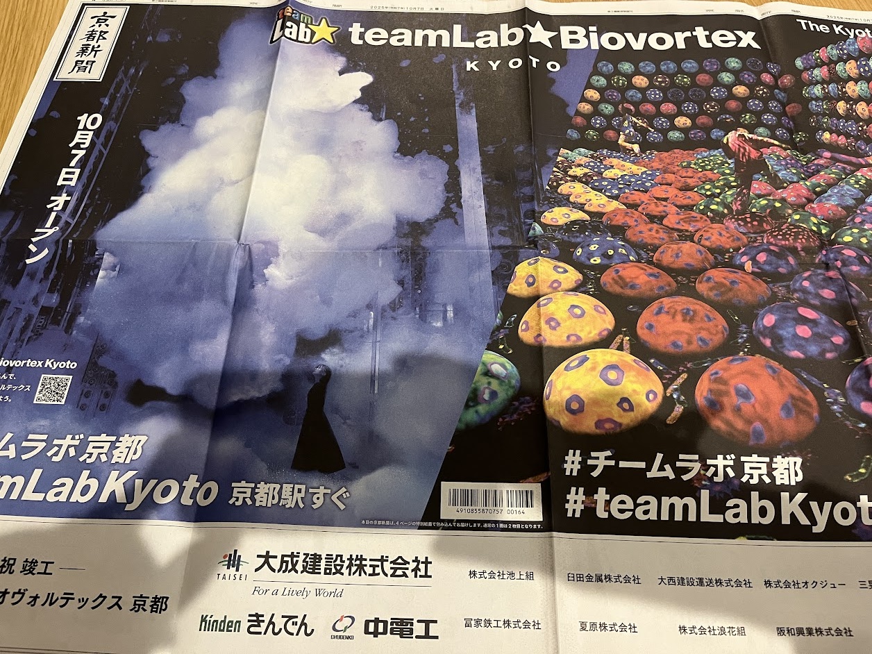 「チームラボ京都」のオープン日、2025.10.7京都新聞 朝刊を読むと