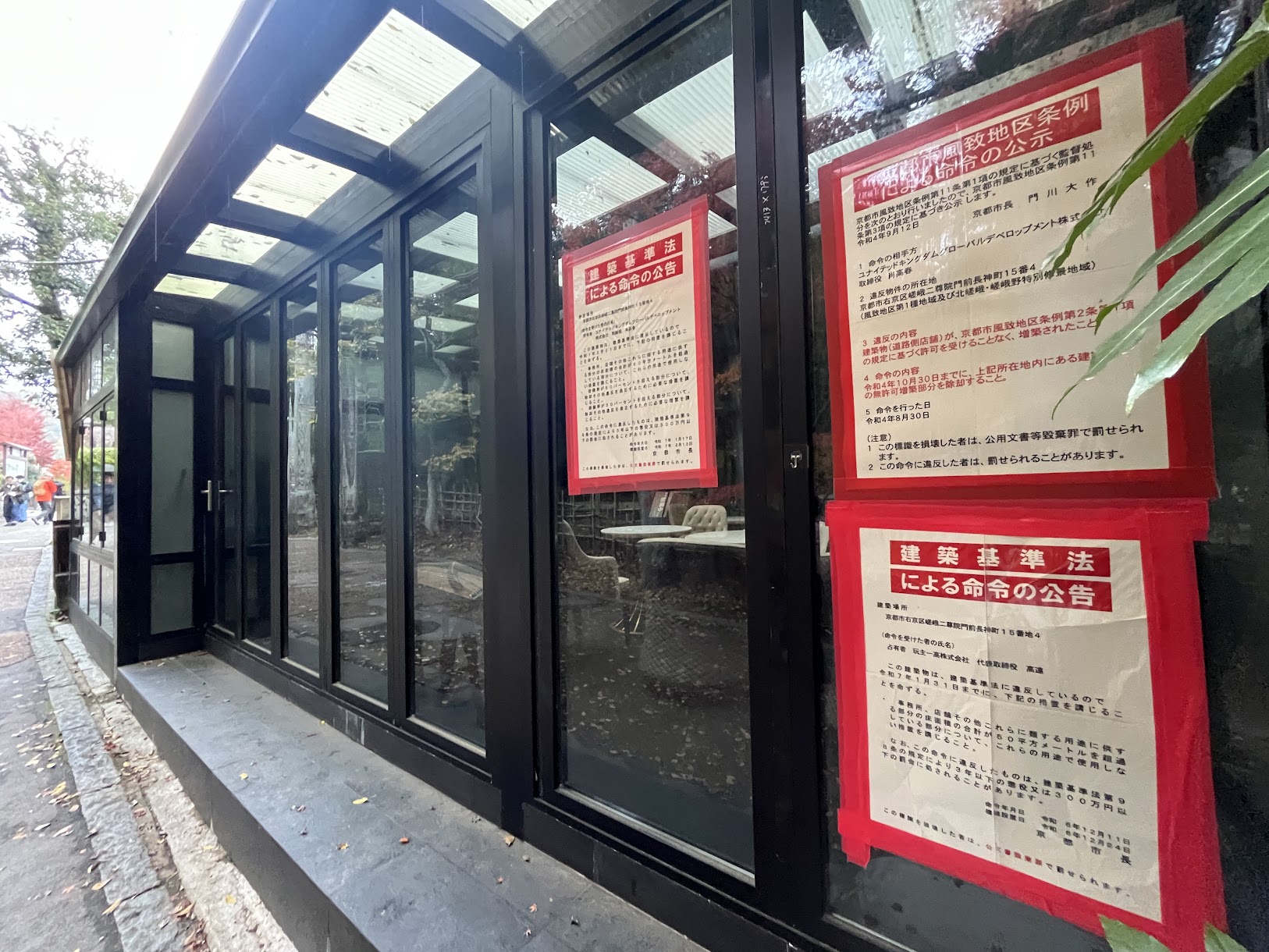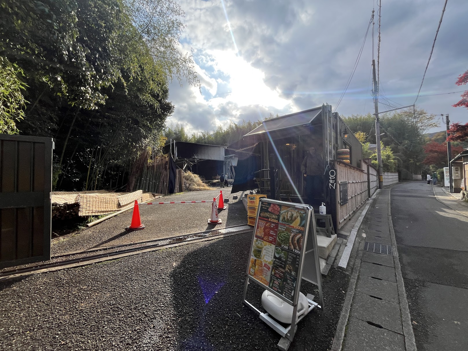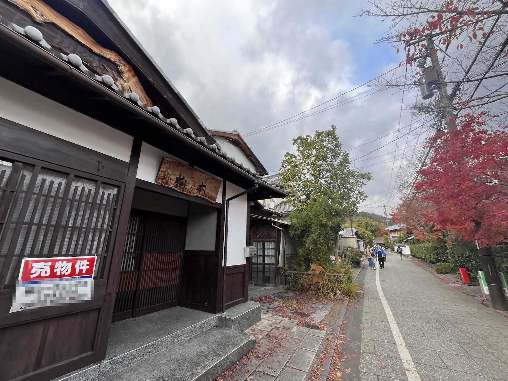中国の方に人気の「嵯峨鳥居本」エリアに入って来ました。よほど価格が高いのか長らく「売物件」のままの店舗。海外の方から人気となると相場がバグってくるのが常です