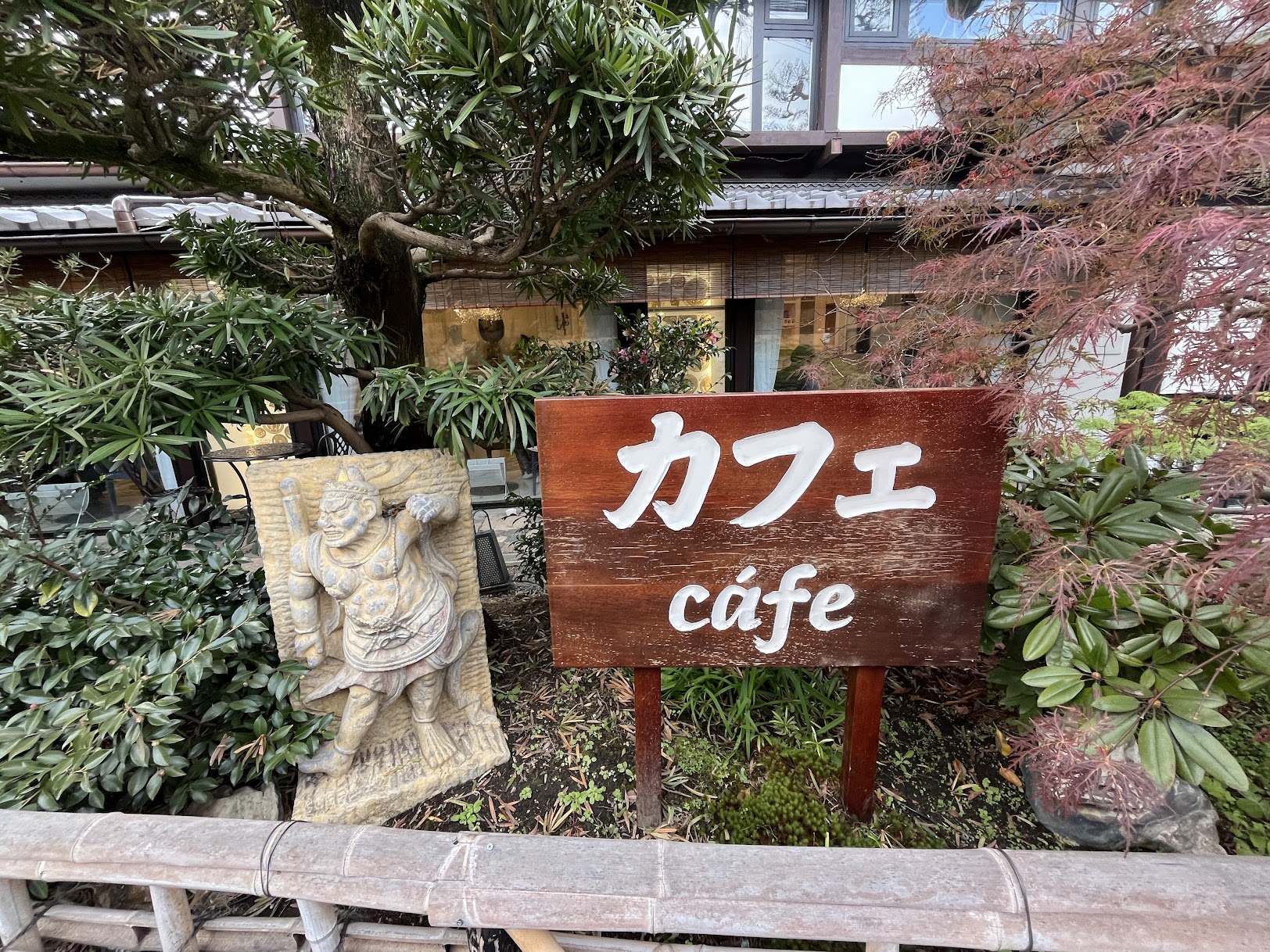 隣の像とも相まってここまで力強い書体の「カフェ」は見たことがありません