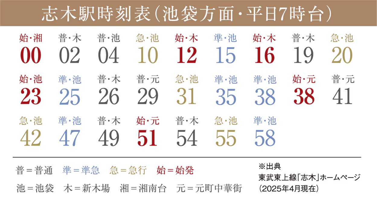 東武東上線は有楽町線、副都心線との直通電車が多く、始発の設定もあり着席チャンスに恵まれています
