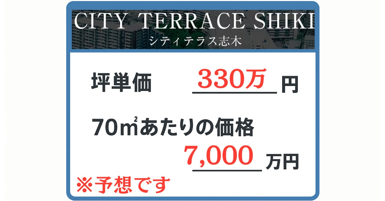 - 中古相場;坪200万円、70㎡換算で4,200万円ほど