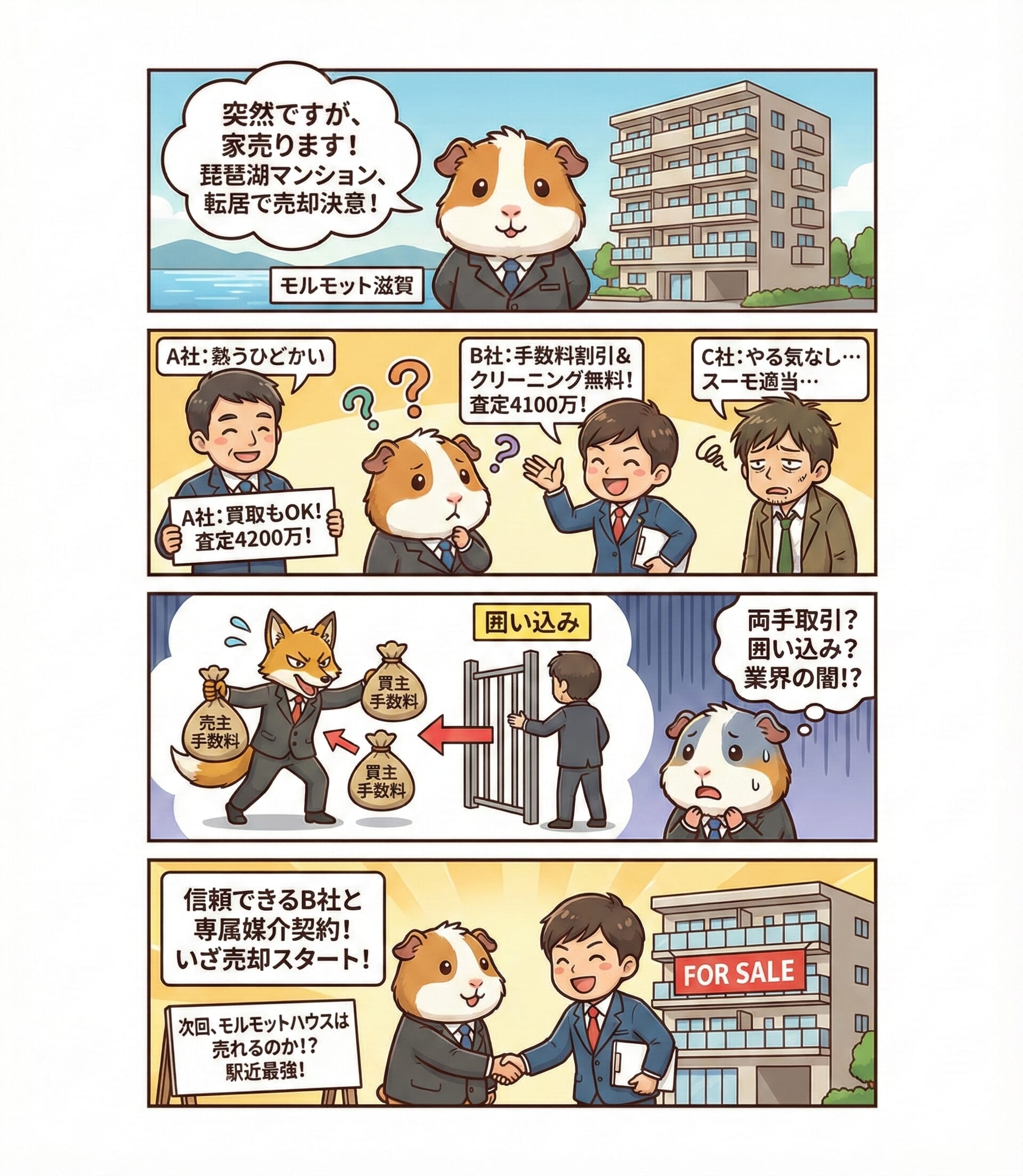 さらにB社は「ぜひモルモット邸をお預かりしたく、仲介手数料を〇〇%特別にお引きします!」と提案してきました。