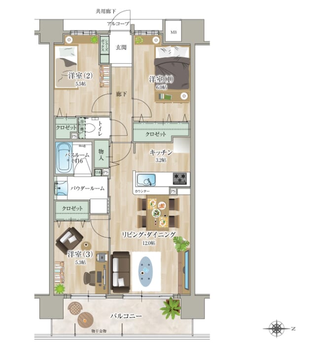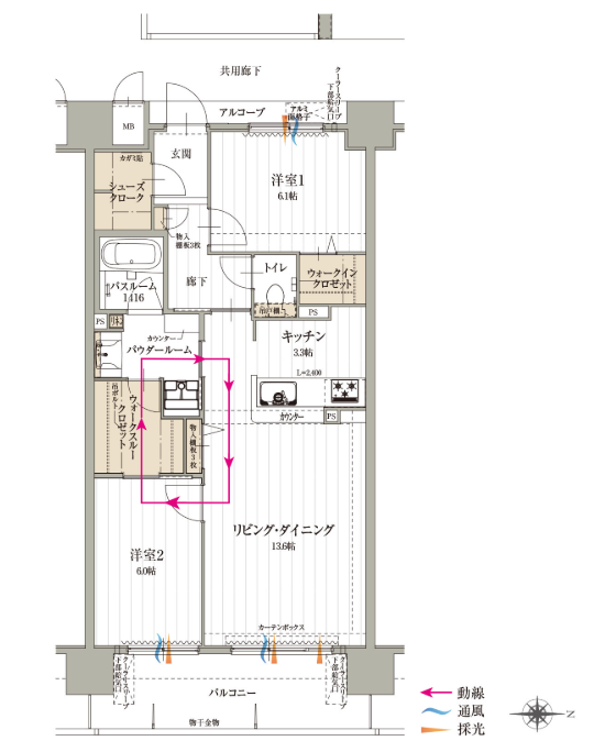 - 住戸の概要: 71.35m2、中住戸、東リビング、6階