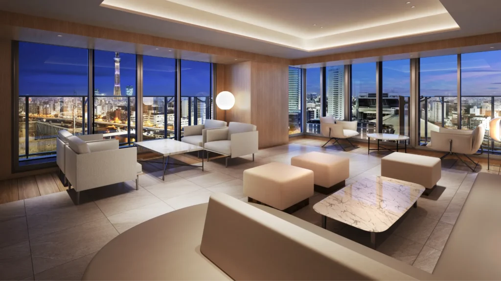 高層階にはラウンジや屋上テラスも設けられ、隅田川花火大会やスカイツリーの眺望など、この地ならではの魅力を存分に楽しめる設計となっています。