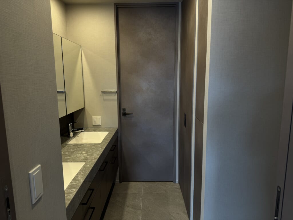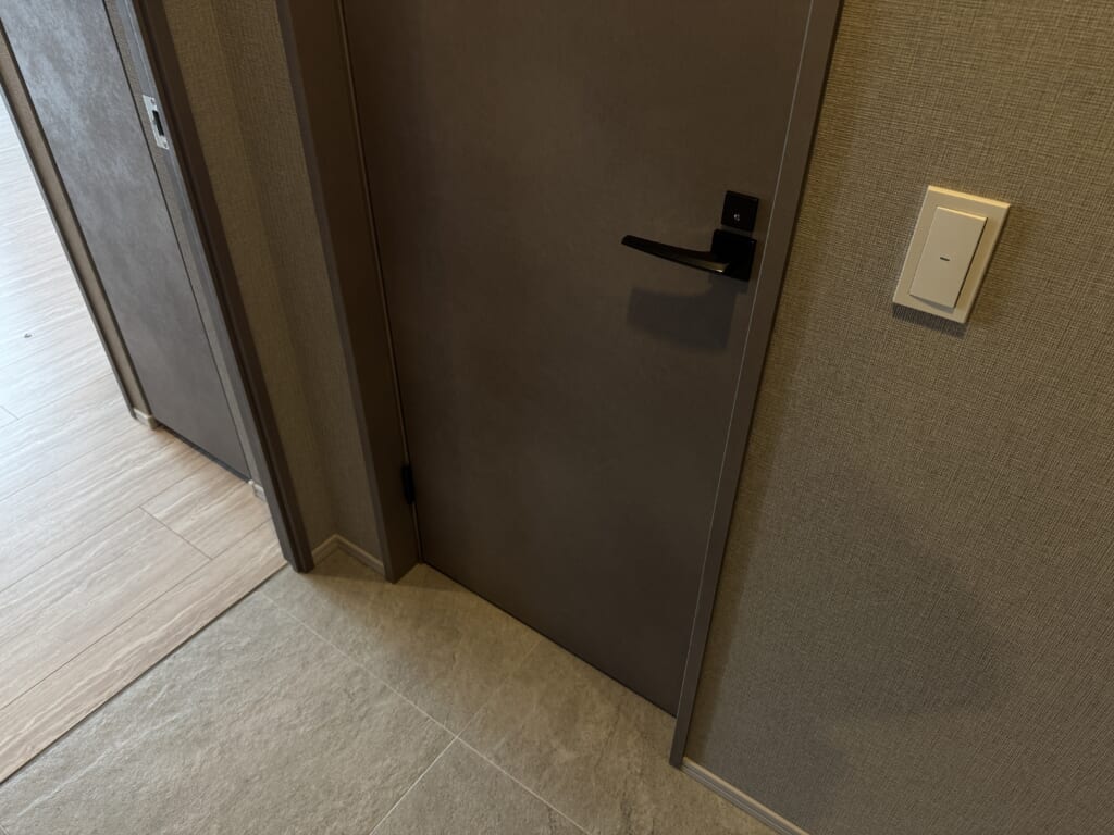 ほぼ全てのドアで床から天井まで伸びるフルハイトドアを採用。こちらは洗面所内ドア
