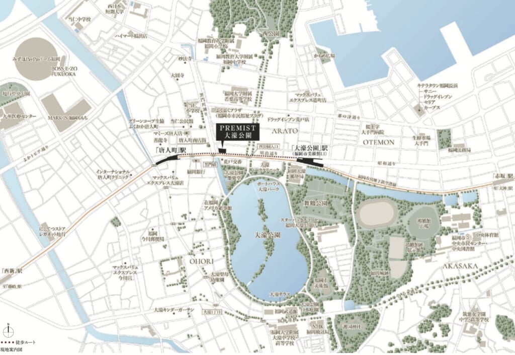 “プレミスト大濠公園”の名の通り、まさに大濠公園を眺めるためのマンションという立地です。