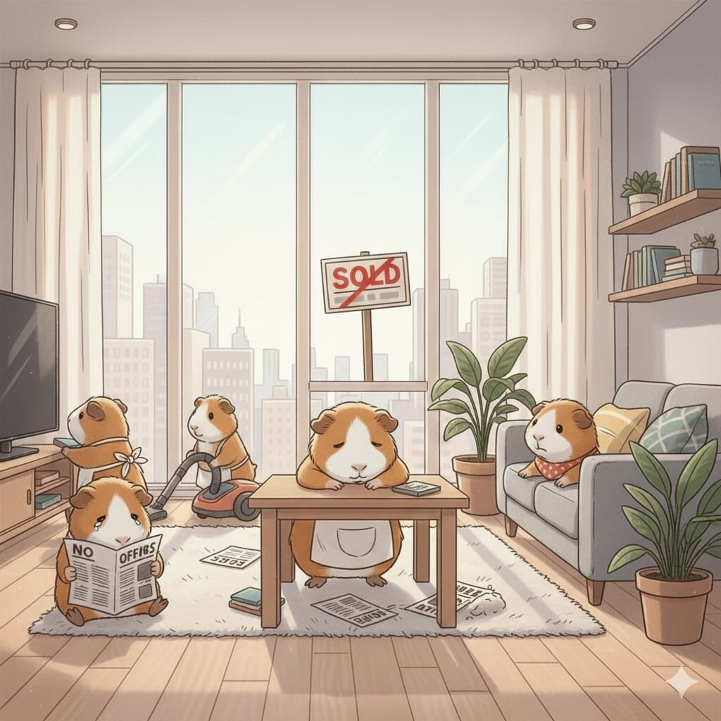 仲介さんに鍵を渡して、「値下げもしたし空室にもしたのでぜひ頼みます!」と強く依頼して、愛した我が家を離れたモルモットでした。
