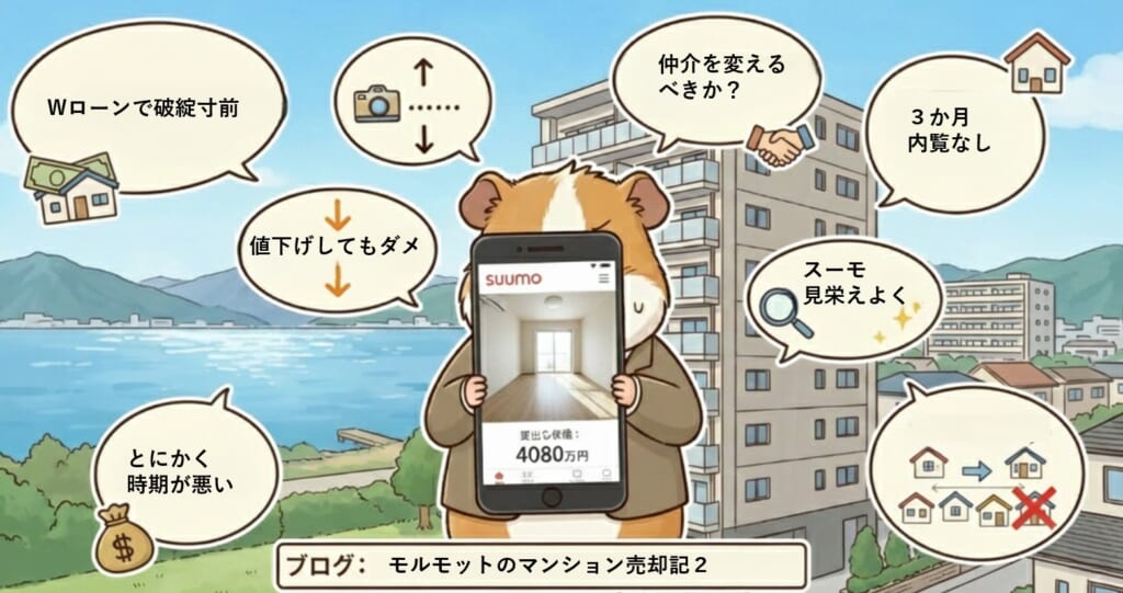仲介さんは頑張ってくれたと思います。強いて言うのであれば、査定価格・売り出し価格の設定が間違っていたということでしょうか。そしてそれは「この価格でワンチャン売れたら最高だな~」と夢を見て4080万円で売り出した私の責任でもあります。