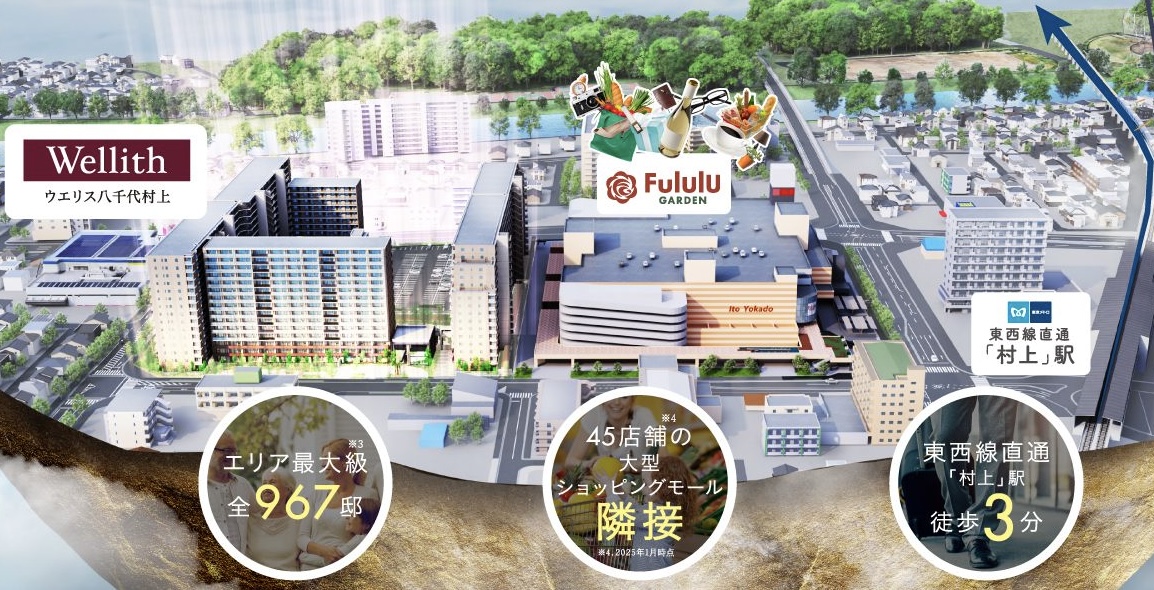 ウエリス八千代村上は東葉高速鉄道村上駅徒歩3分に建設される、15階建て総戸数967戸(Ⅰ工区:593戸、Ⅱ工区:374戸)でⅠ工区:即入居可、Ⅱ工区:2027年4月下旬引き渡し予定となっています