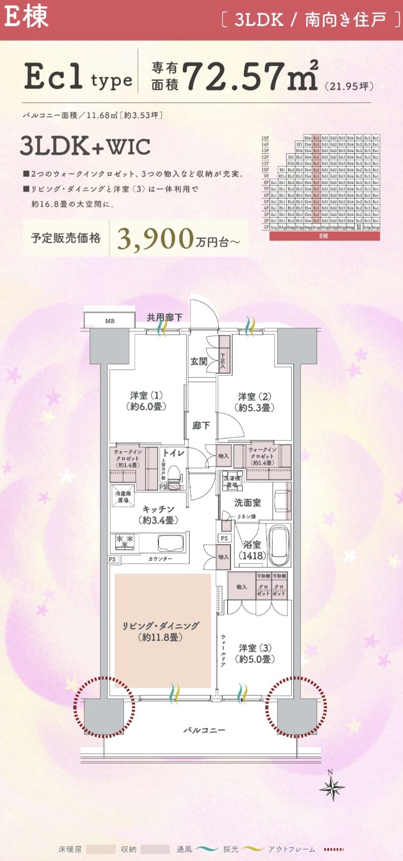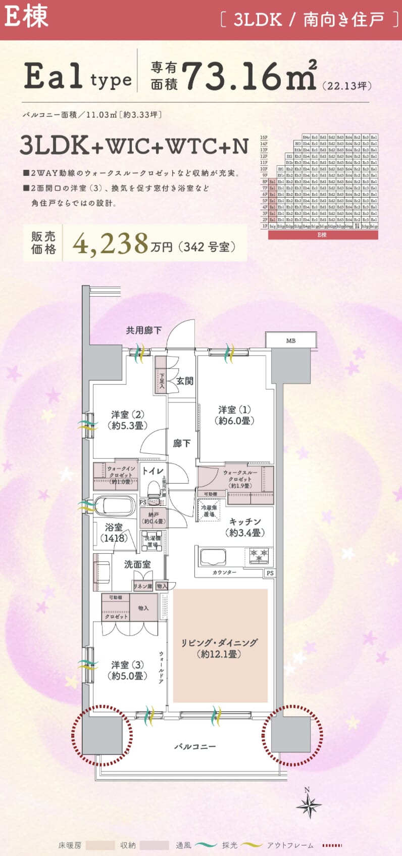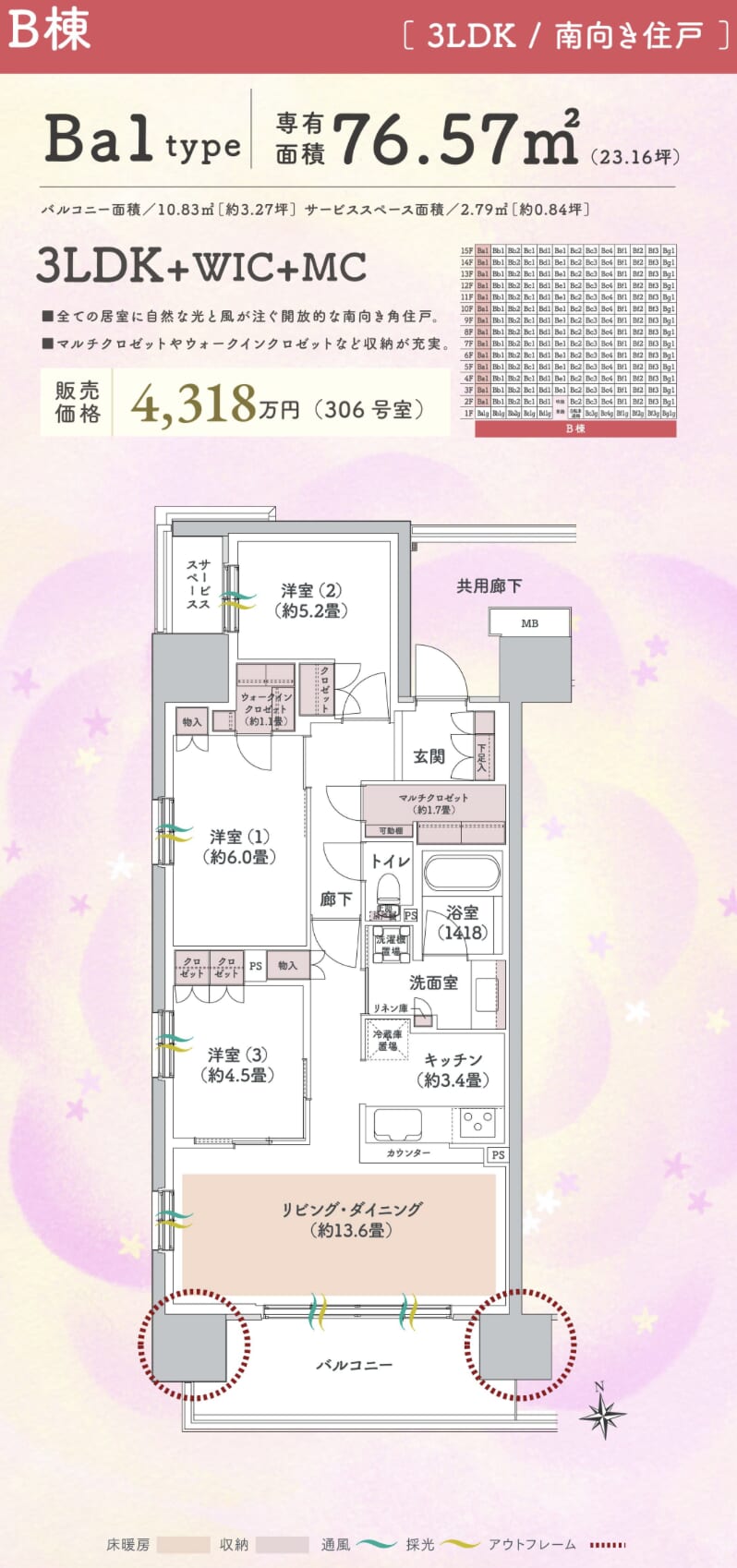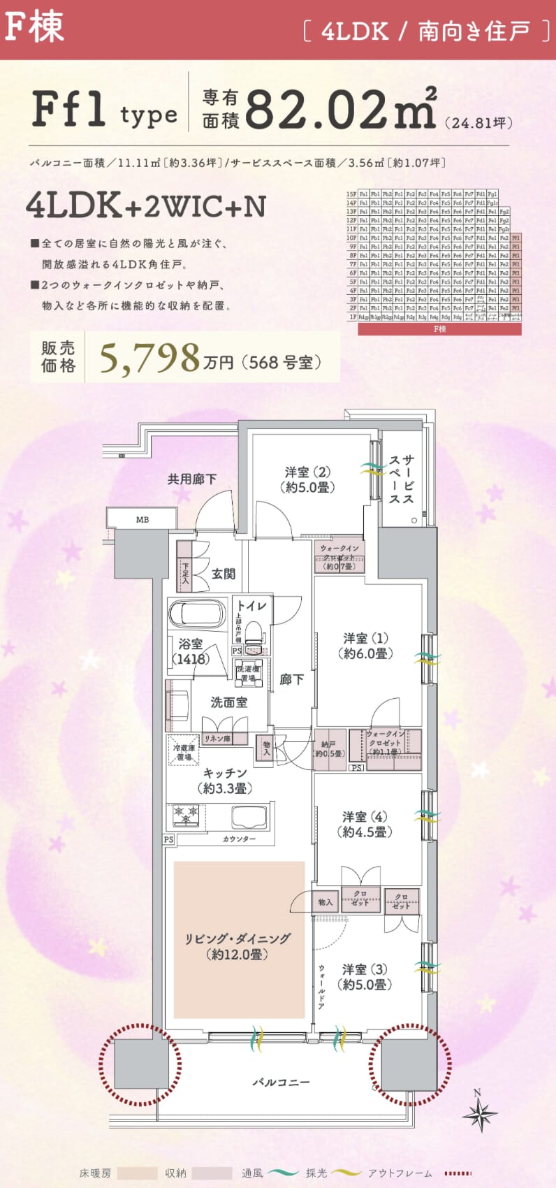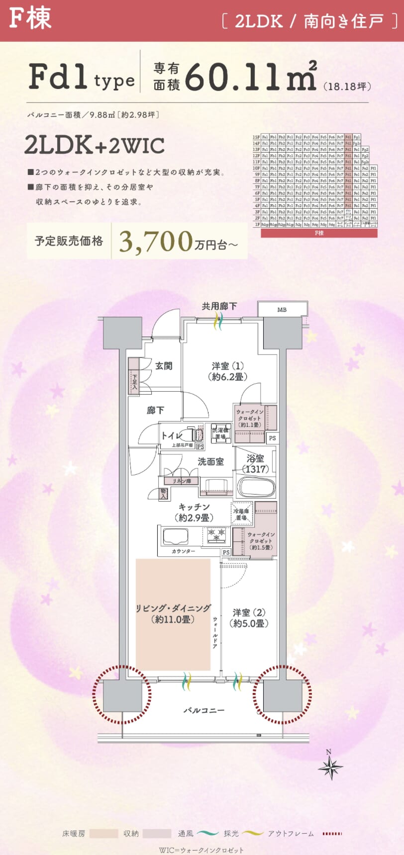 先着順住戸および次期販売予定住戸の間取りと価格を共有します坪単価180万円前後からあり、間取りや階数による価格差が大きい印象でした