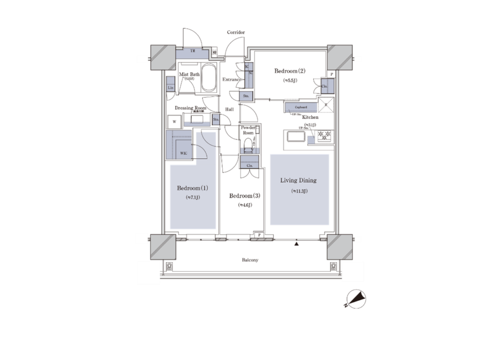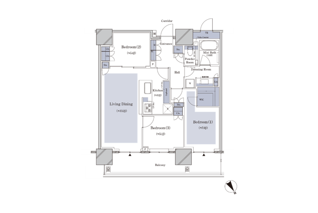 間取は多様です。面積が60㎡を超えてくるとワイドスパンで開口部も良好になります。