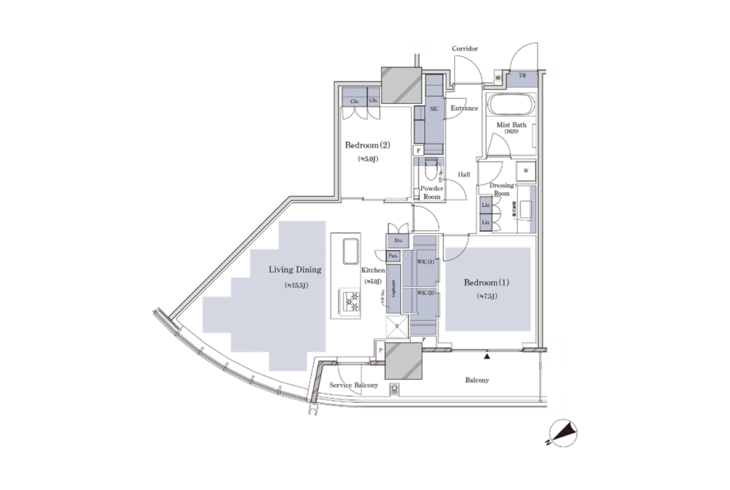 眺望による価格差が大きく、運河側を望む北西と北東向きの単価が高くなっています。