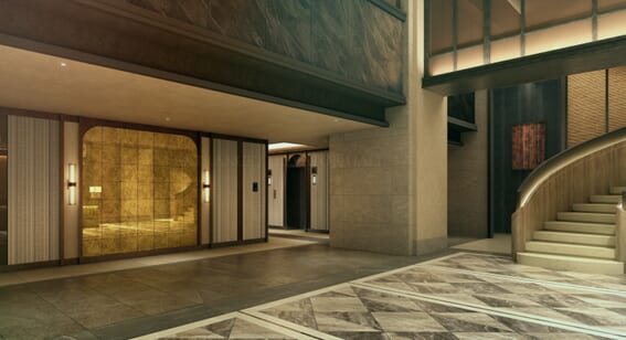 エントランス、エレベーターホール、ロビーラウンジ、富裕層に刺さるマンションとなっています。