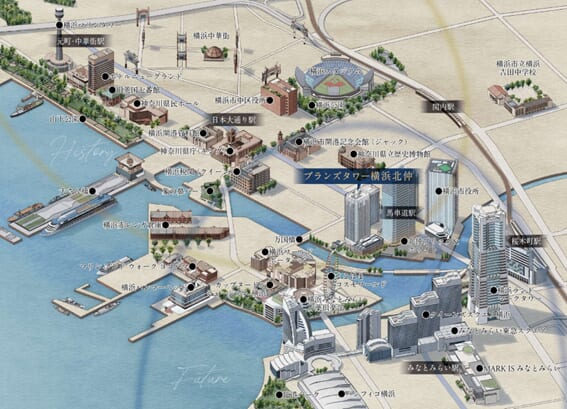 本物件の隣A3地区には「ノートルダム横浜 みなとみらい」があり、A1・A2地区は住友不動産による高級賃貸マンションとなるラトゥールが建設中です。