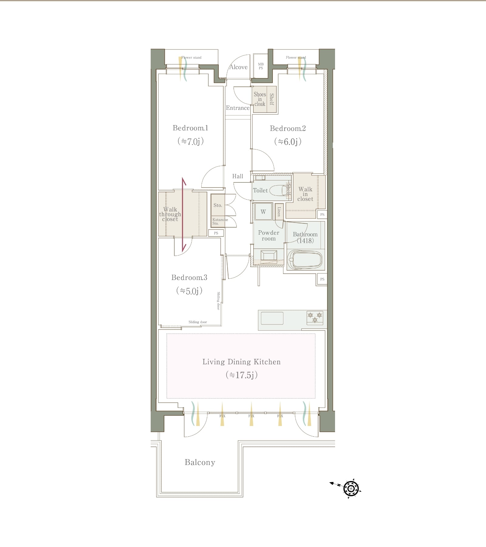 ▼Hタイプ 南向き 3LDK 121.46㎡