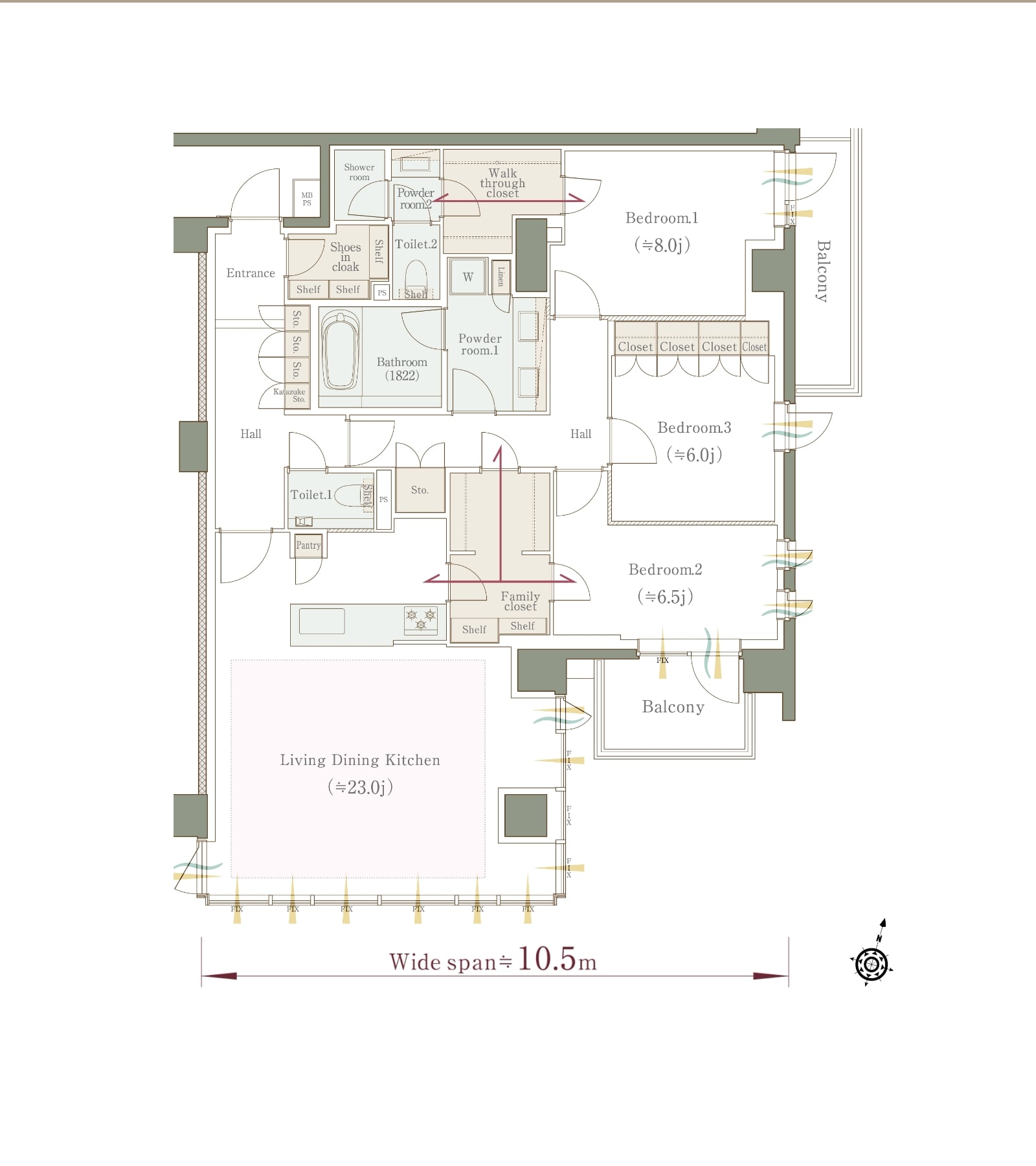 ▼Fタイプ 北向き 3LDK 80.73㎡