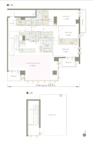 HPのイメージモデルが30台共働き夫婦、小さい子供ありなので、仮に70㎡台3LDKの部屋を購入すると、約1.5億。最低でも世帯年収1400万は必要です。この層が、23区内×都心部へのアクセス良さ×駅近で購入できるギリギリラインの物件ということでしょうか。