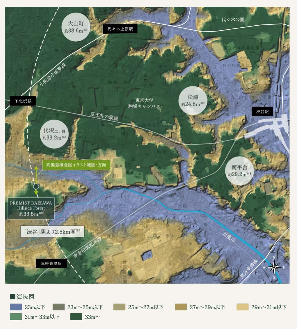 高級住宅街に共通することって高台に位置することなんですよね。代沢は世田谷区の中でも高台の位置にあります。さらに筑波大付属中高や東京大学も近く、偏差値的にも最高峰といえる文教エリアでもあります。