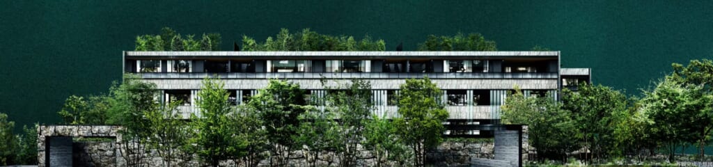 570本もの木々が植えられ、プライバシーへの配慮と森の中にいるような潤いを感じられるランドスケープになっています。