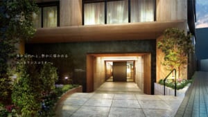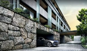 その2:恵那錆石を基壇部・外塀・共用部の壁面に使い、圧倒的な重厚感を演出