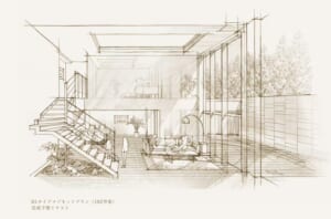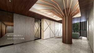 エントランスコリドーやラウンジのデザインにもこだわりを感じます。特にラウンジを支える中央の大きな柱が、1本の枝を広げる木のようにデザインされています。