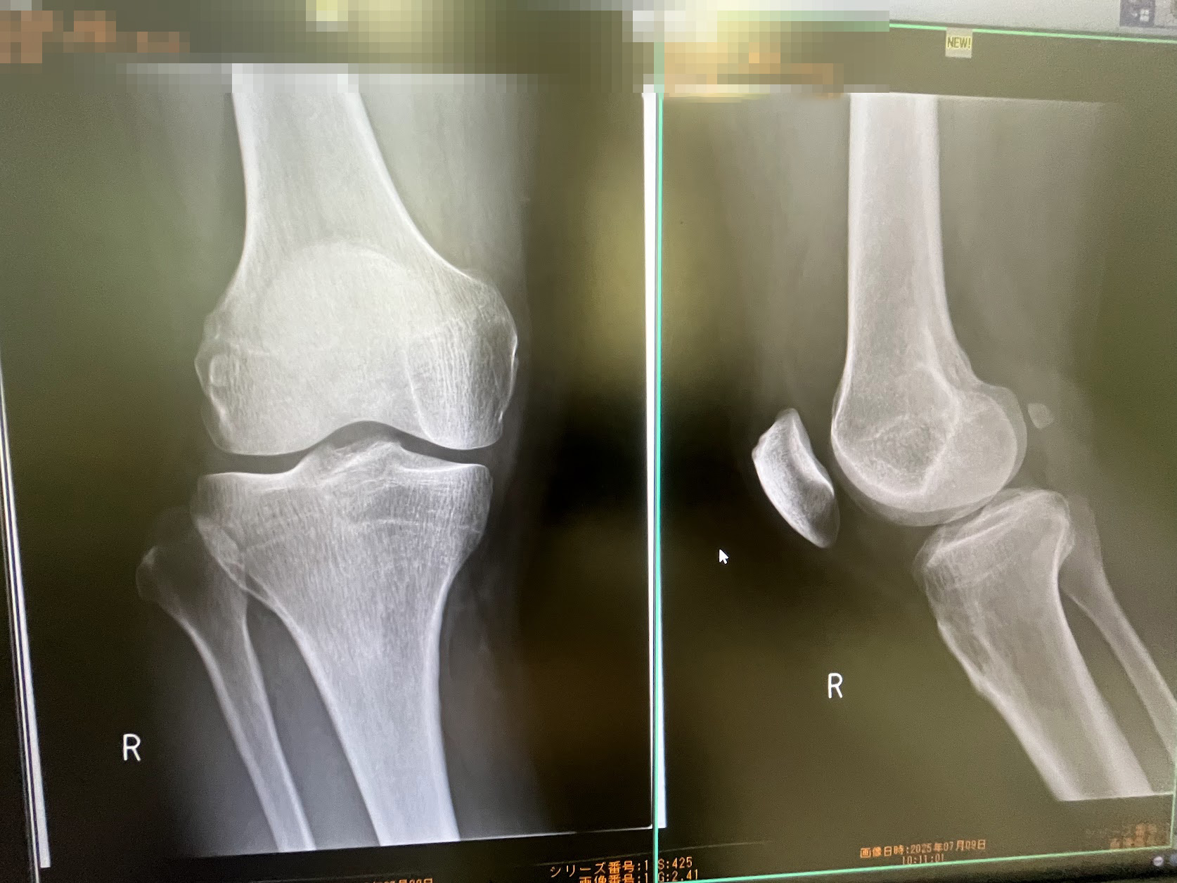 右膝半月板損傷の故障を抱かえたままのスタートとなり(この写真ではヒビが写っていません、MRIで判明しました)手術も覚悟しましたが幸いな事にヒビが直線だったため手術でなく自然治癒を待てとの事でした