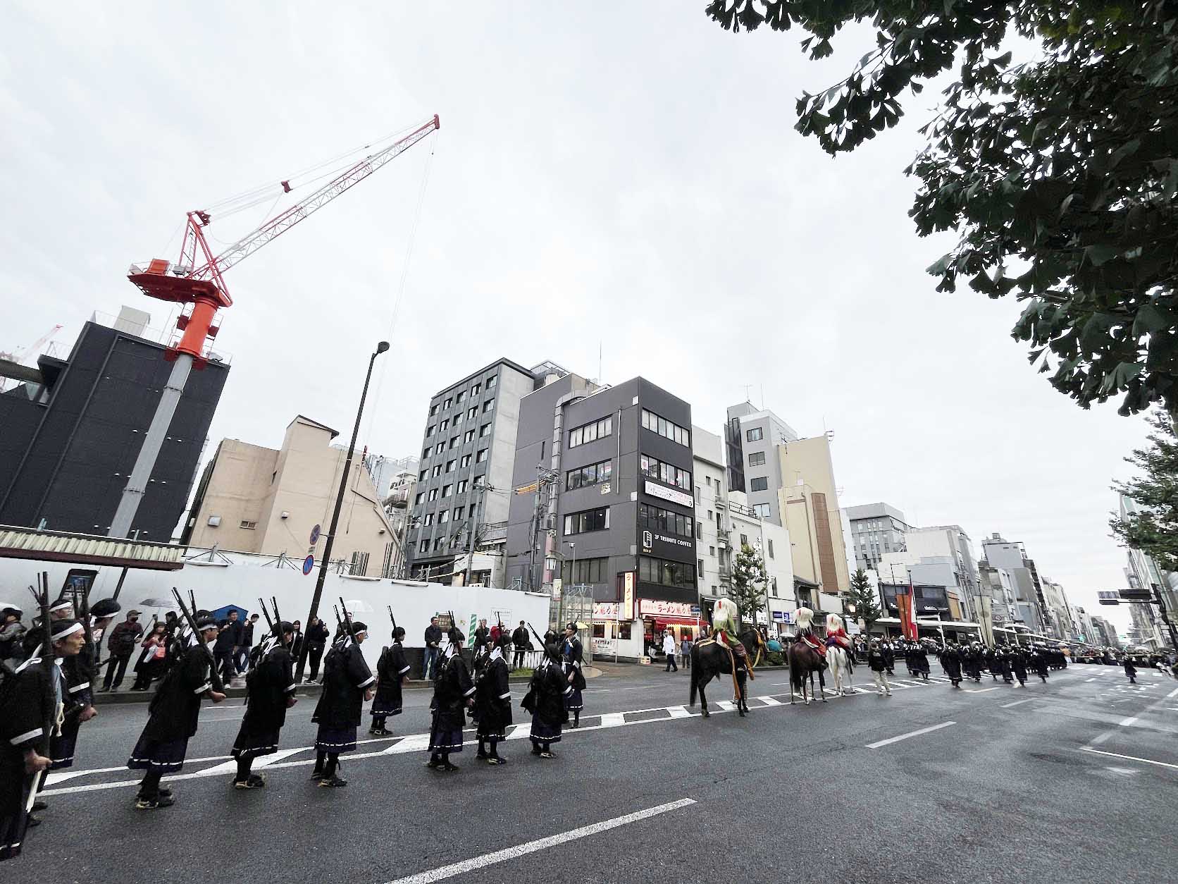 再び運命に導かれるように不動産会社が休みの平日(水)開催となった「時代祭」の列は『ローレルコート京都河原町三条』の河原町通を南へ