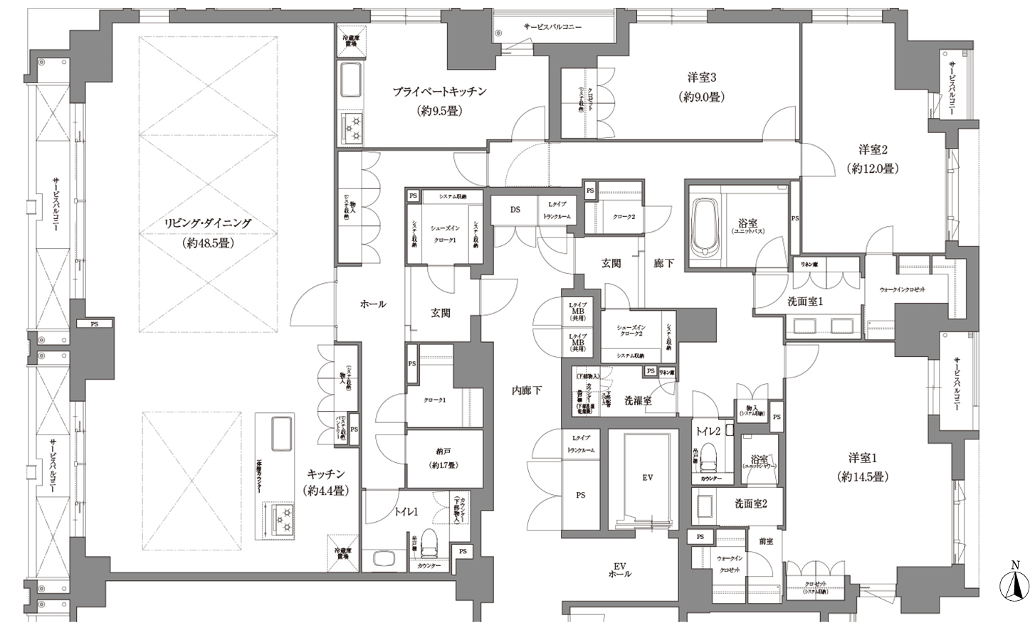 プラウド京都東洞院通(築2017年2月)・11階建最上階3LDK143.5㎡南向き