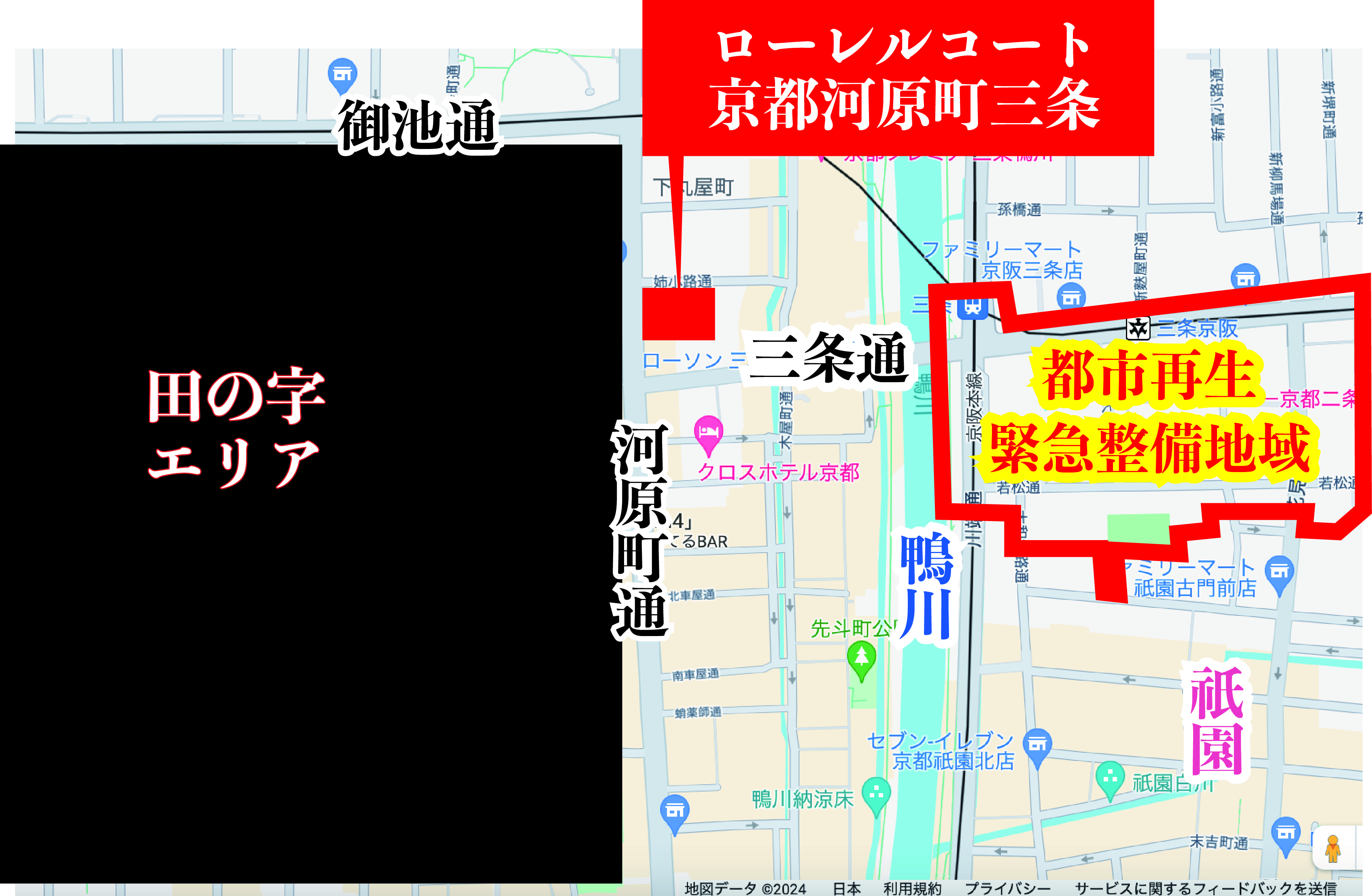 民間企業の開発が容易になる「都市再生緊急整備地域」に指定された三条京阪エリアへ