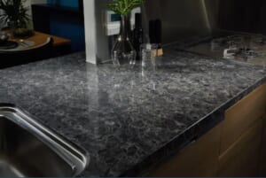- シーザーストーン天板:キッチンだけでなく、パウダールームにも採用されています。ブラックカラーで高級感があります。プレミアムプランは少し模様入りで、更に高級感が出ます。