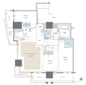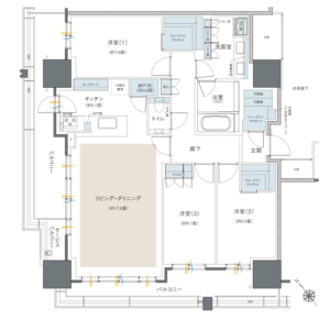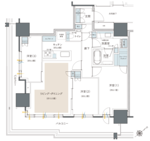 - 全洋室がリビングOUTでプライバシーや遮音性◎(洋室(3)をリビングINにしないでくれてありがとう)