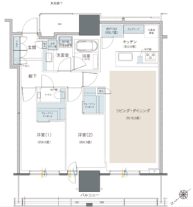 - 洋室2つがリビングIN×引き戸なので、プライバシー確保や遮音性はイマイチ(洋室(2)は廊下側に扉を作ることはできなかったのでしょうか…?)