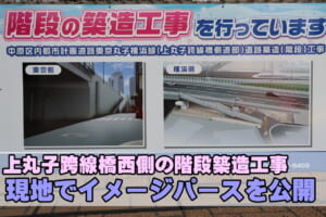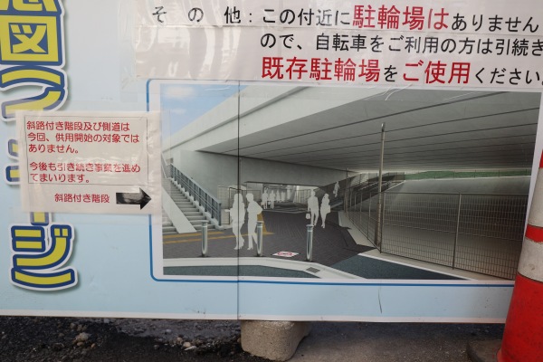 このマンションからJR横須賀線のホームに行くには現在は南部線高架下のたい焼きを売っている店の横をくぐってゆくのですが、実は綱島街道から南武線を越えてホームに行くルートが整備中です。