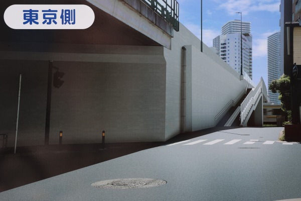 ここは高架線をくぐるのではなく綱島街道と南武線を跨ぐ階段を使うのでどちらが早いかはちょっとわかりませんが、繁華街も通らないので距離的には確実にこちらのほうが近くなると思われます。