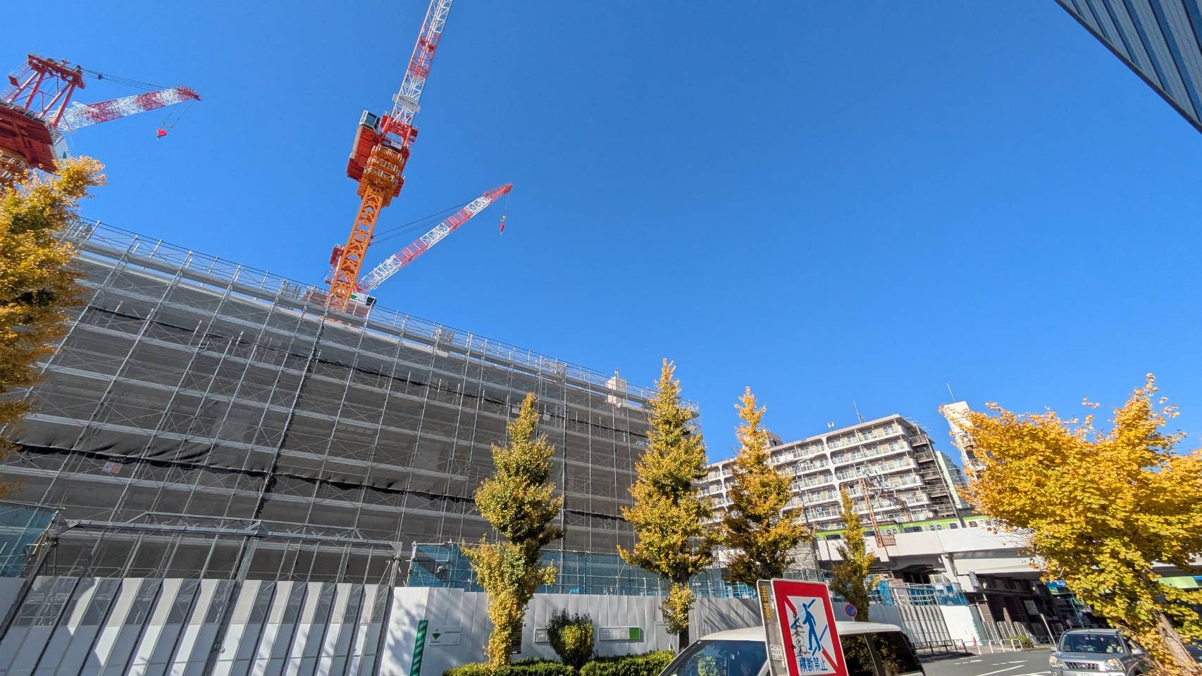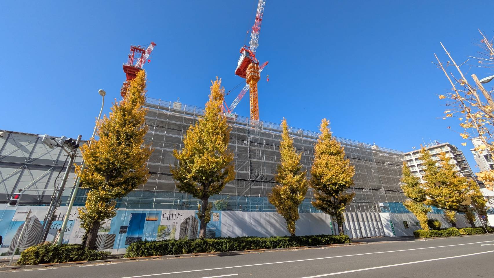 個人的には壁画とマンションの被りがどうなるか気になっていたのですが、ぎりぎり被らないところもある模様なのが建築中の様子でわかりました。残念なところはありますね