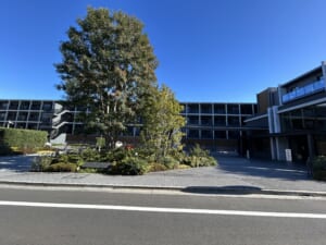 ▼青梅海道側の敷地は駐車場になっており、車の入出庫はもちろん、住棟はめちゃくちゃ奥まっているため、大通りに面している感は全くありません。写真奥に住棟が写っていますが、62mの離隔距離があり、相当離れています。