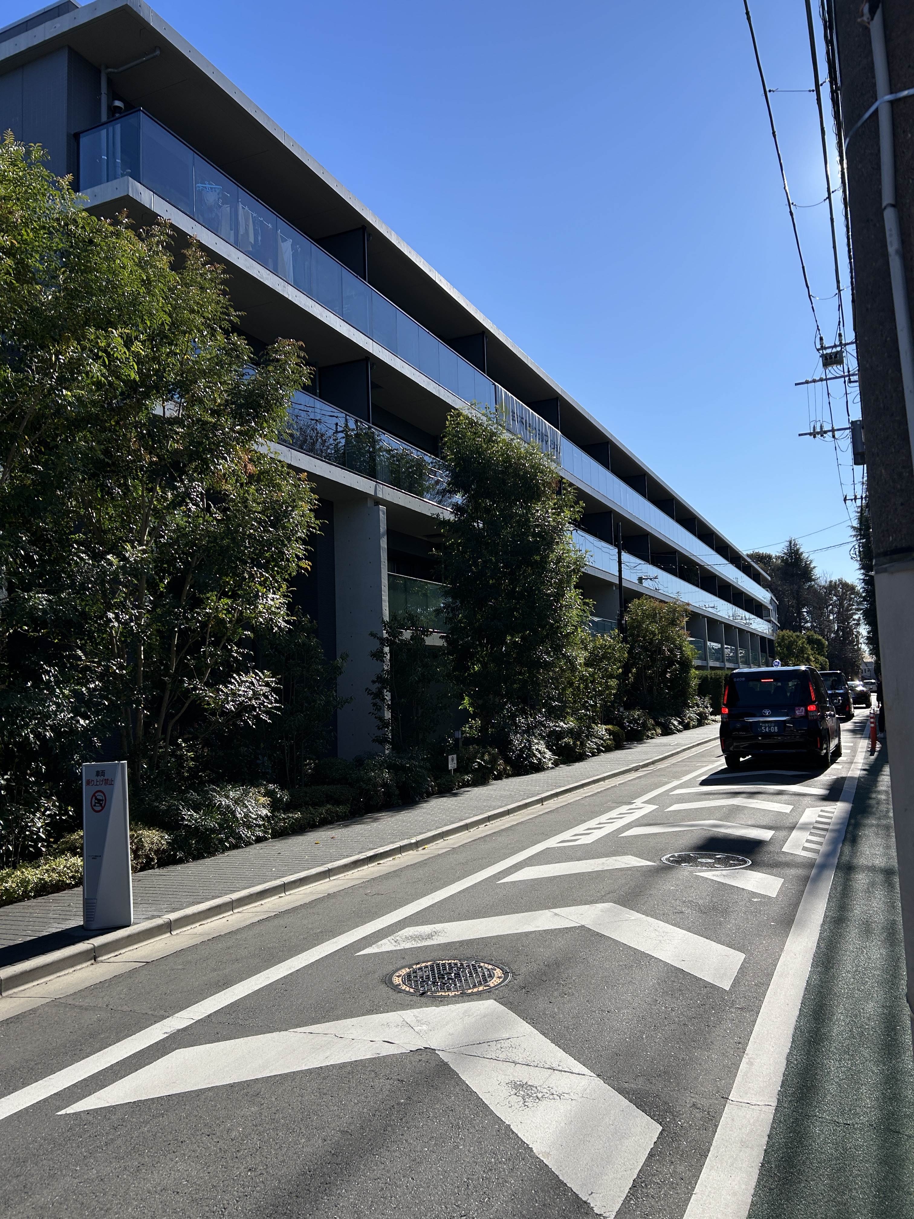 敷地の北側は青梅街道に面していますが、南北に長い敷地を活かし、住棟は青梅街道から62mも離隔距離があり、周辺は第一種低層住居地域らしく住宅街の落ち着いた雰囲気になっています。
