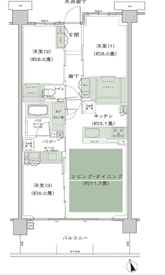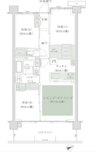南西向き4階 3LDK 70.27㎡ 9,300万円