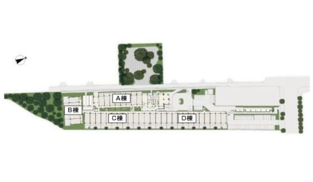 4階建ての低層でありながら、広大な敷地を活かして140戸の規模を確保しています。
