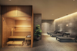 正直、このエリアに共用施設としてサウナは必要か?と思ってはいますが、昨今のトレンドですね。サウナは1日3交代の予約制となりますので、プライベートサウナとなります。