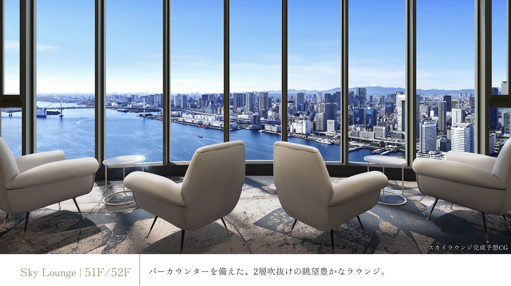 51階、52階吹抜けで圧巻の湾岸ビューを楽しめます