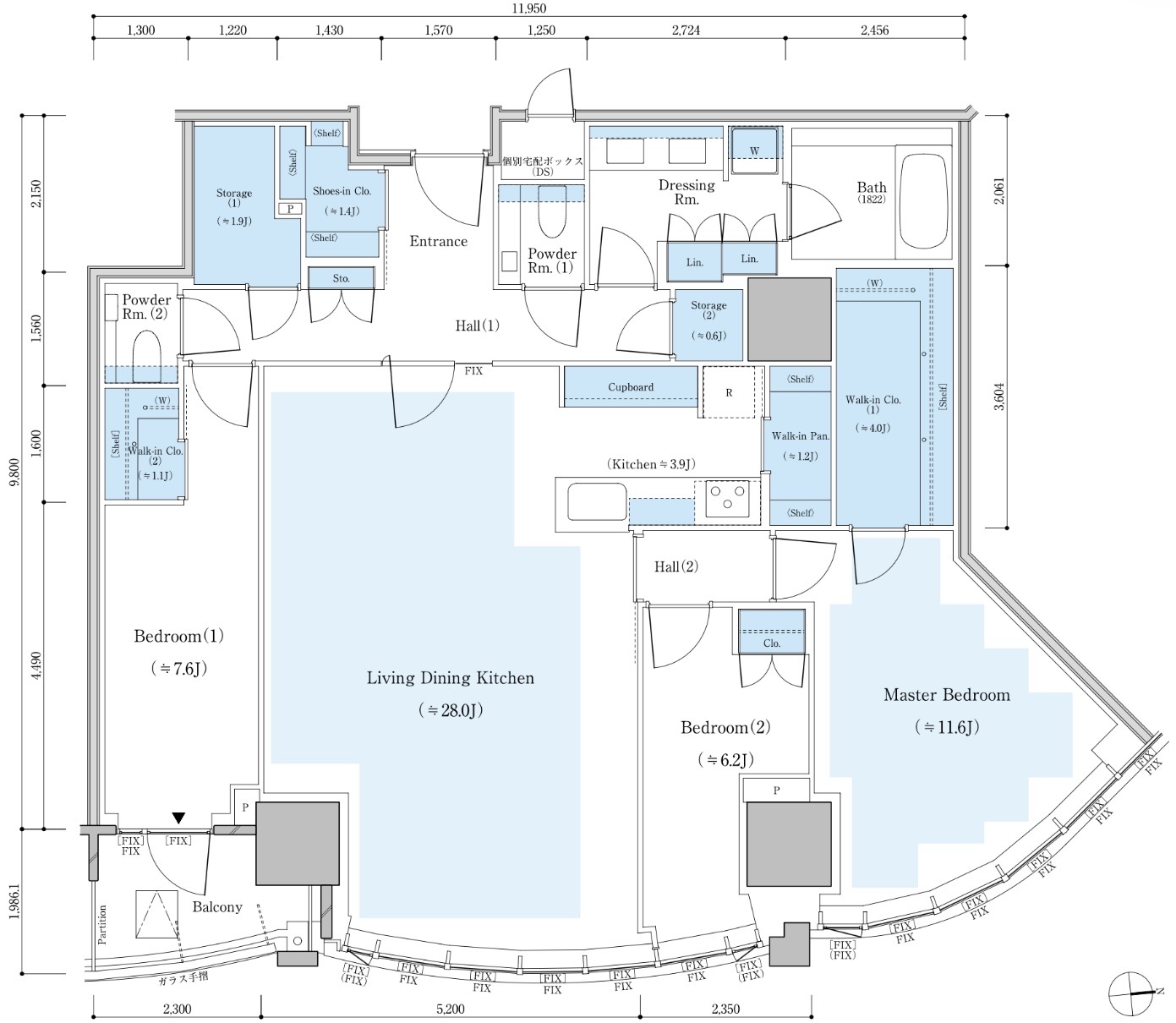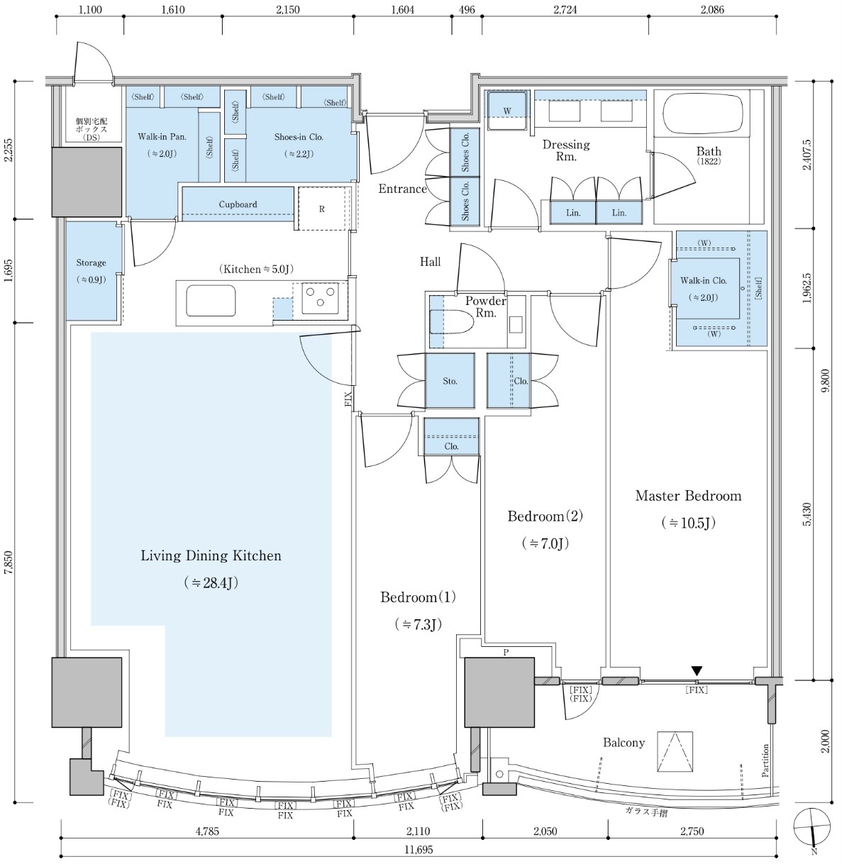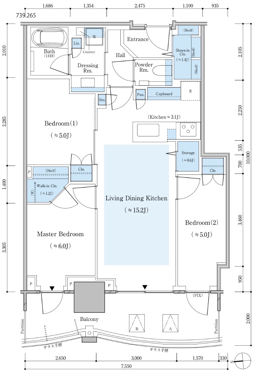 E-130Bnタイプ 130.31㎡ 3LDK 北向き