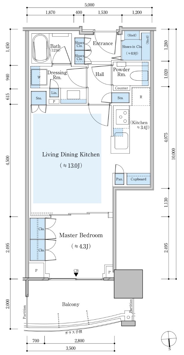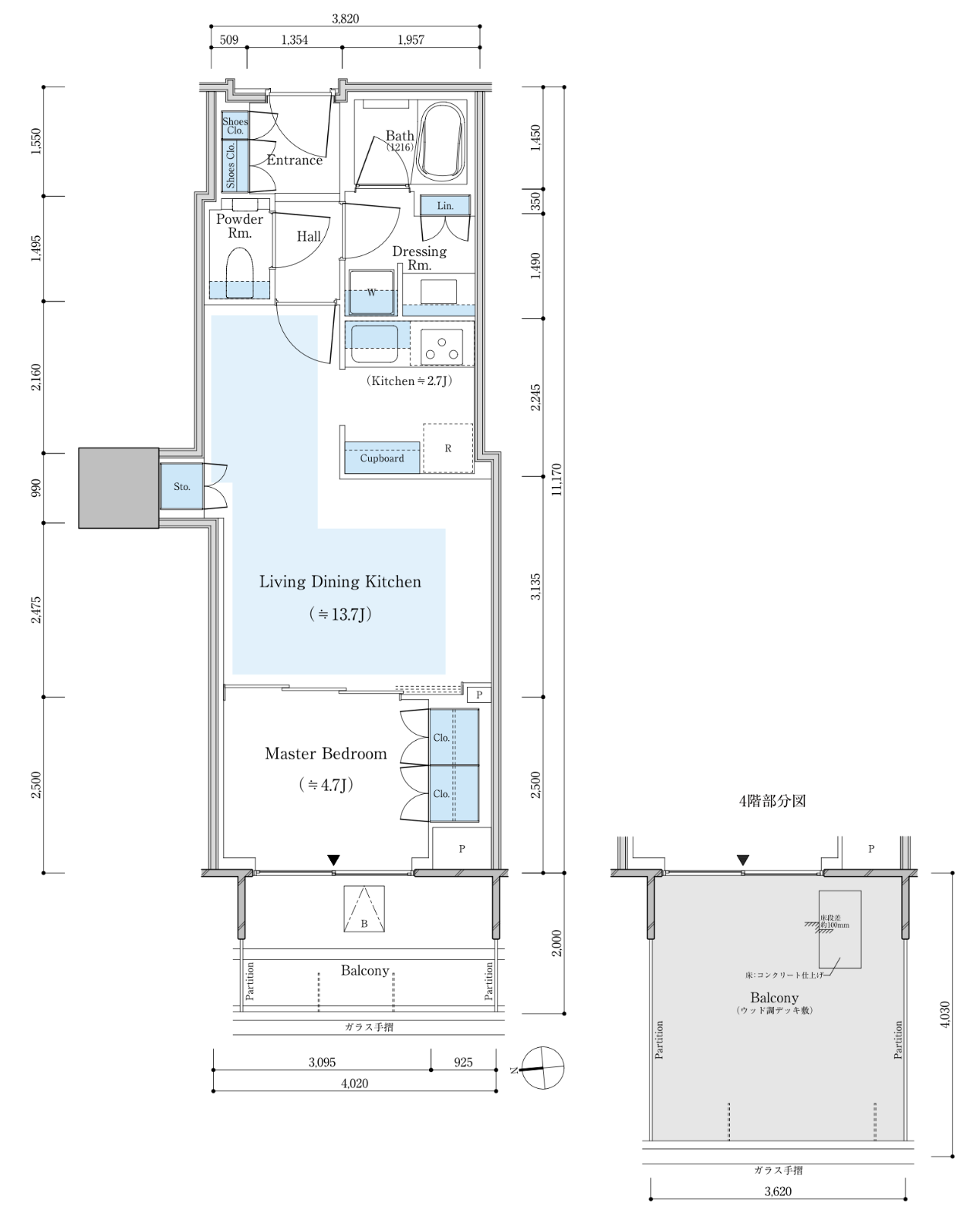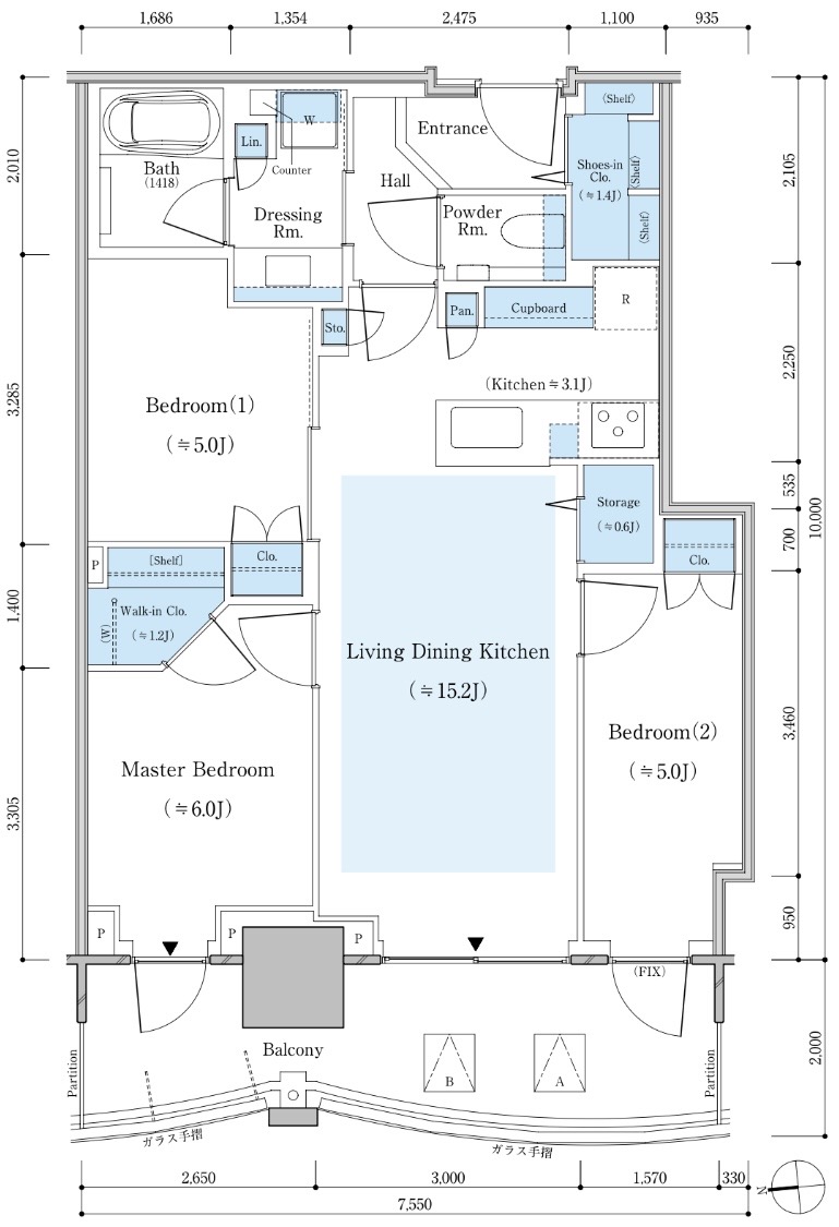E-130Bnタイプ 130.31㎡ 3LDK 北向き