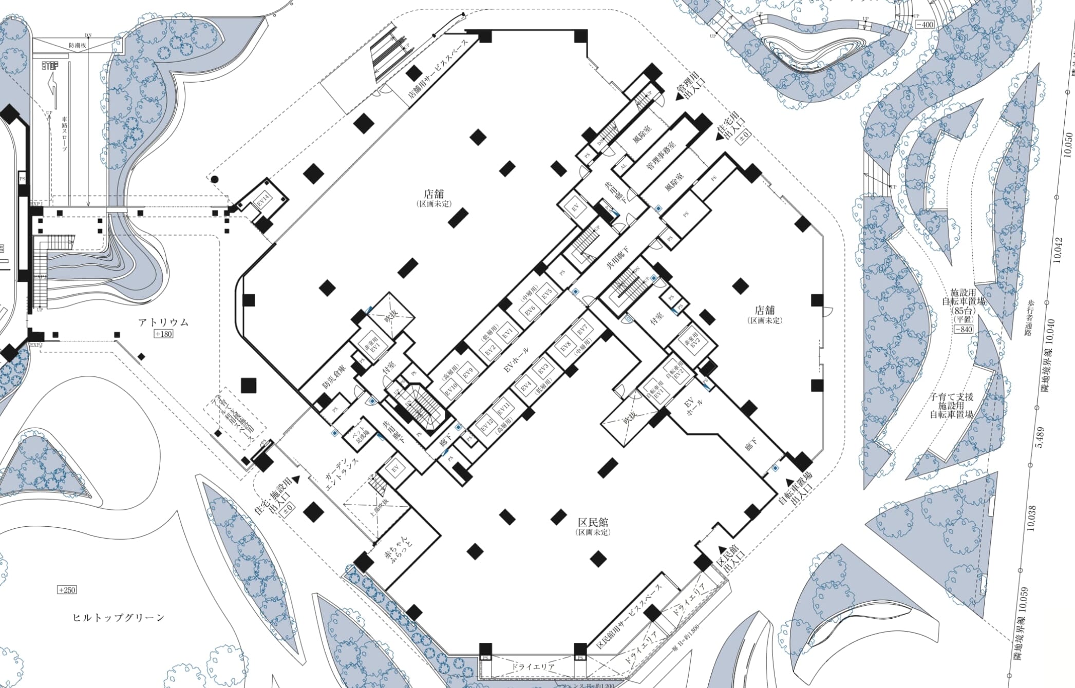 - 駐車場:敷地内機械式 650台 敷地内平面 18台