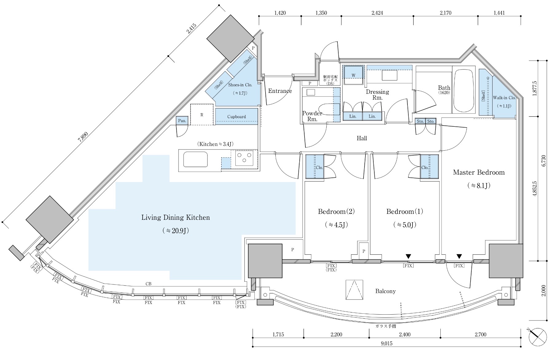 - 20階 8,900万円(坪664万円)