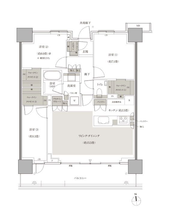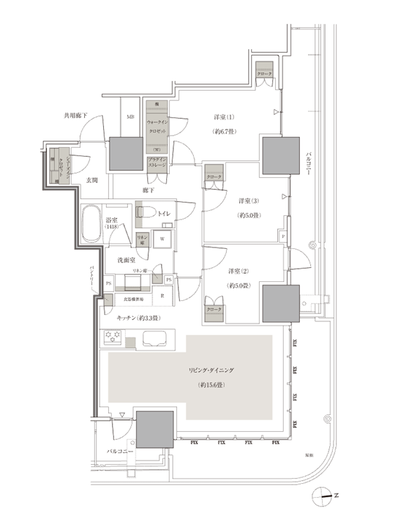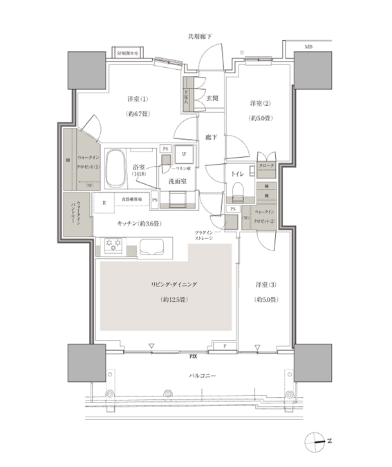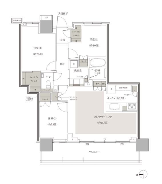 E73 73.92m2 3LDK(トランクルーム面積:0.80m2)