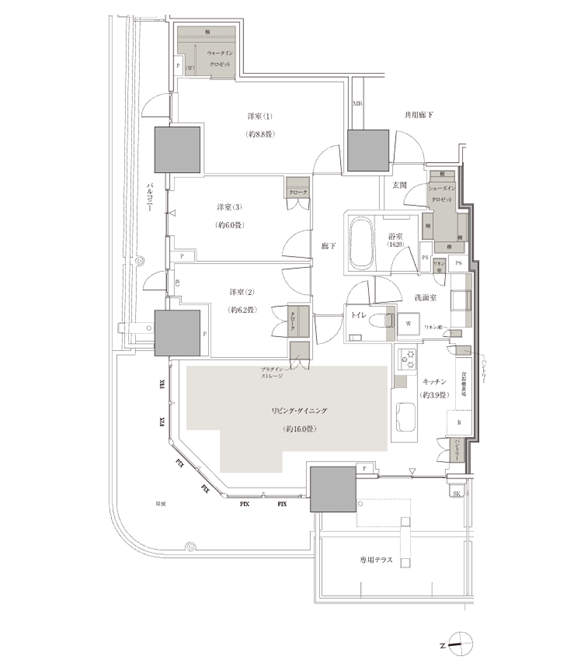 NwT93 93.87m2 3LDK 専用テラス面積/14.63㎡