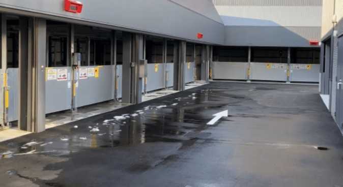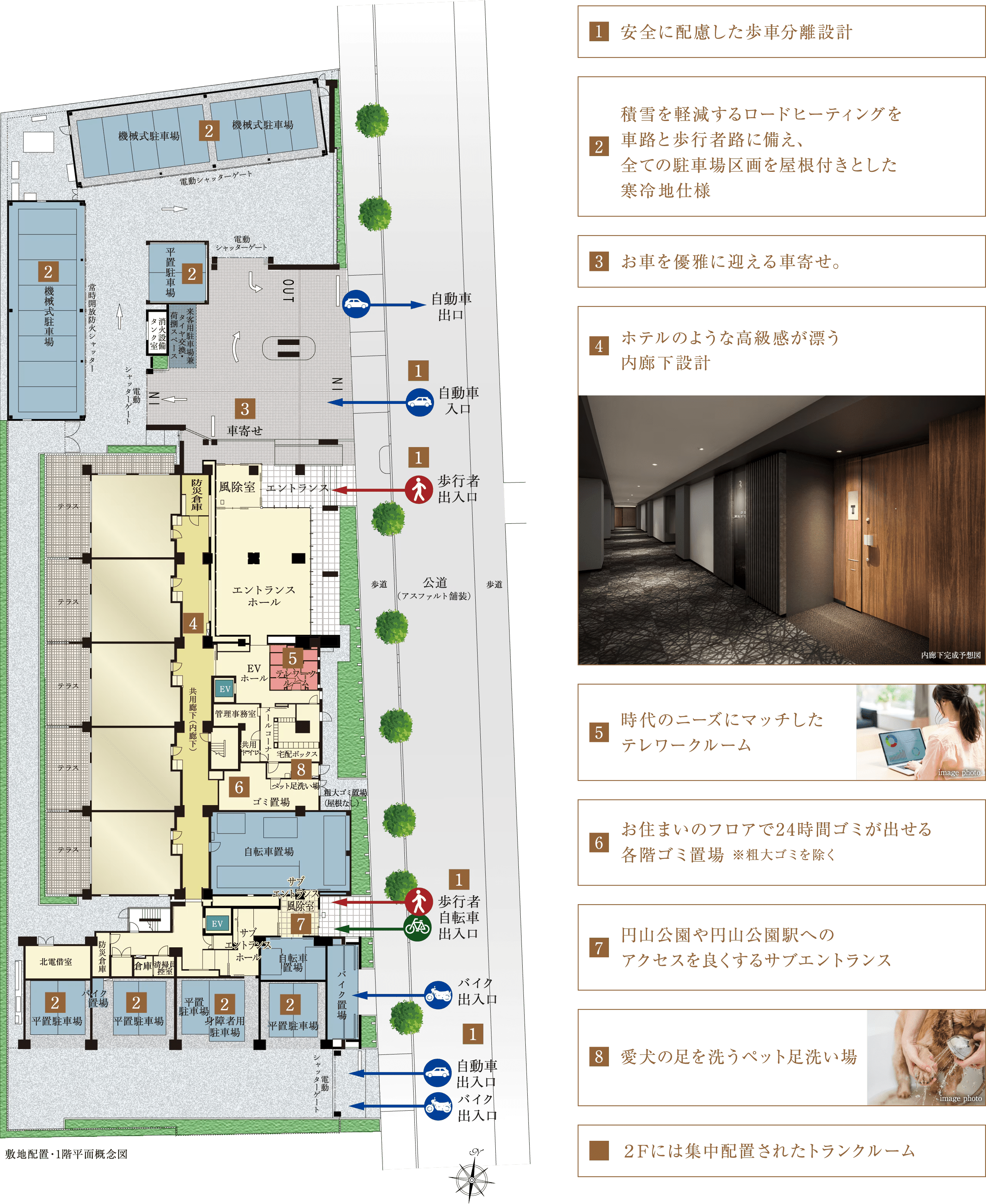 横に広く伸び、そこだけで狭小マンションが建てられそうなくらいに広い車寄せスペースと機械式駐車場エリア。