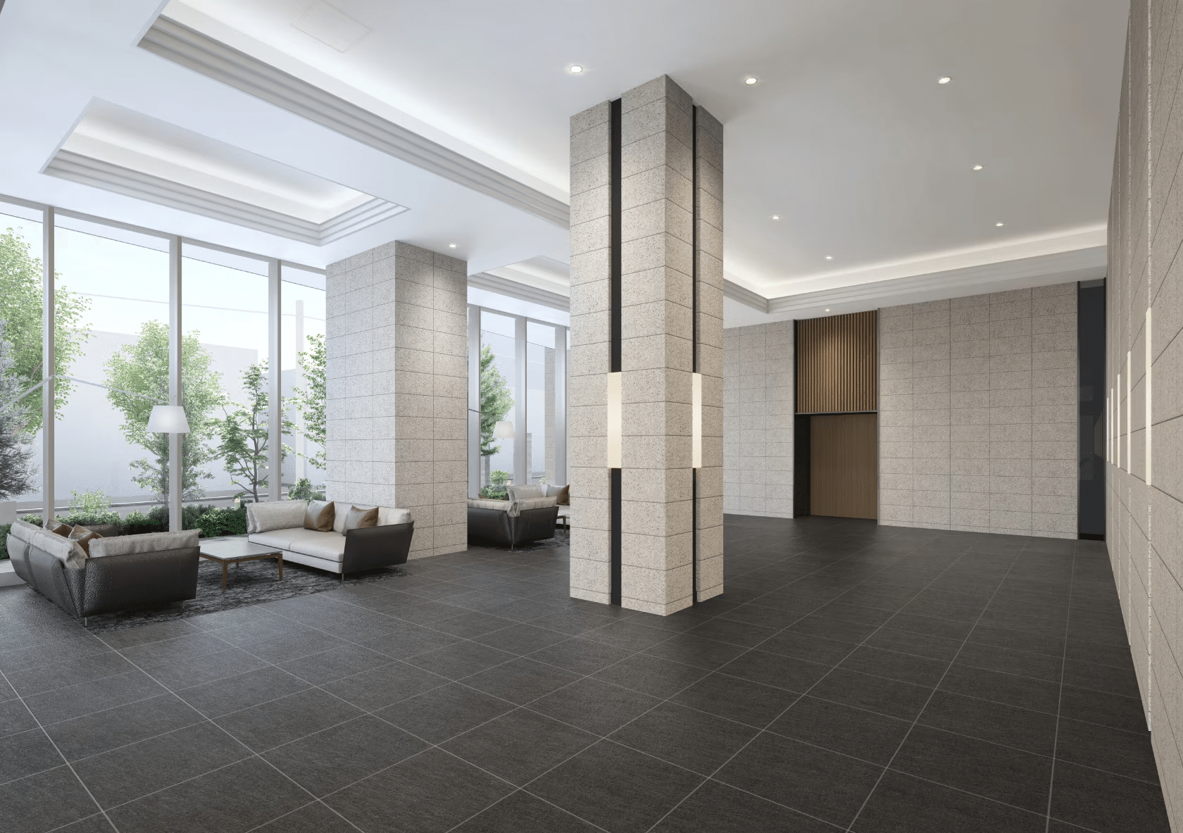 内覧時にエントランスを見ていると居住者様が帰宅され、車寄せで旦那様がドアを開けて奥様とお子様が降りるところを目撃。住んでいる方もエレガント。